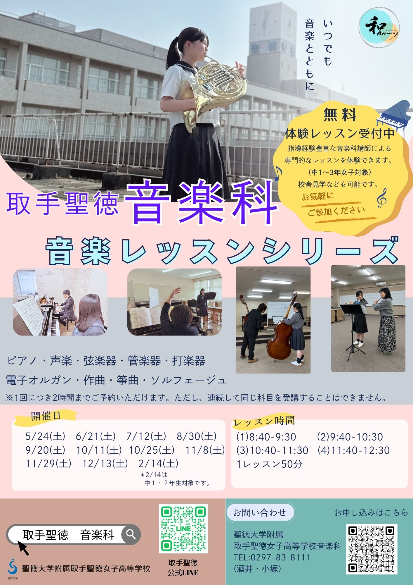 取手聖徳女子高校では、音楽科で教える先生のレッスンを体験できるレッスンシリーズという企画を年間通して開催しております。