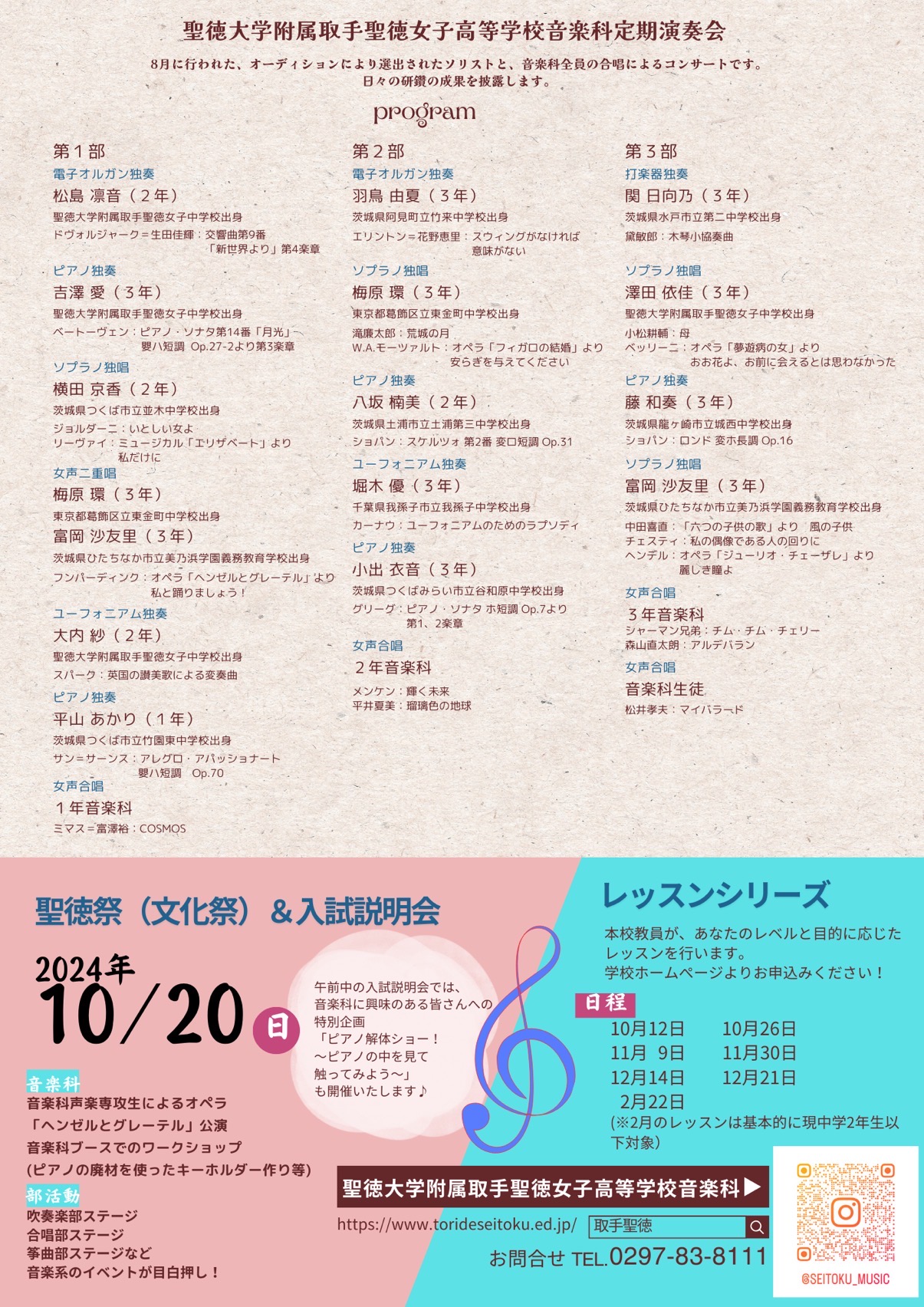 取手聖徳女子高校音楽科 定期演奏会のお知らせ